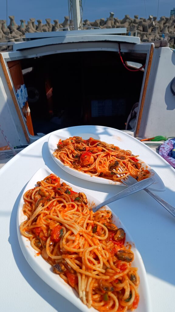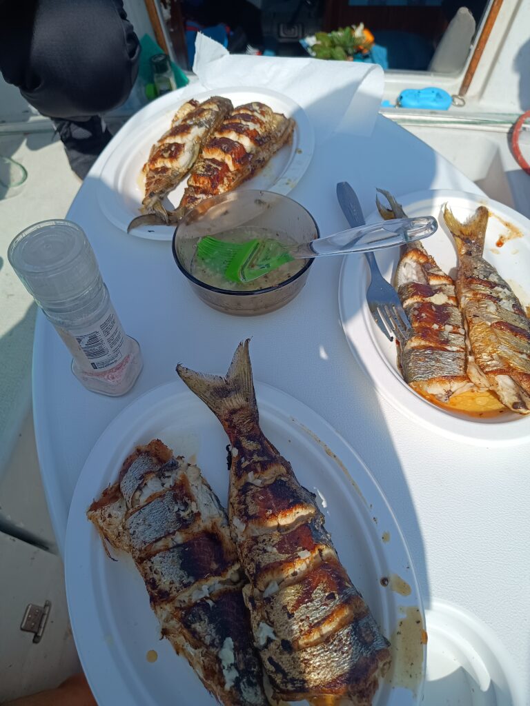 Pe puntea velierului, sub cerul deschis și cu valurile ca fundal sonor, am transformat aceste daruri ale mării în mese simple, dar pline de savoare. Îmi place să gătesc în mijlocul naturii, departe de agitația cotidiană, lăsându-mă inspirat de ceea ce prind. Bucuria acestor momente vine din simplitatea lor – marea, vântul, și eu, creând ceva autentic.